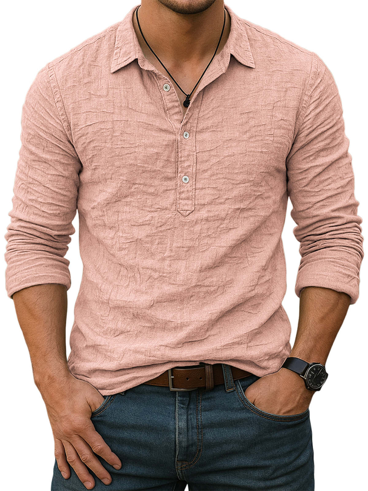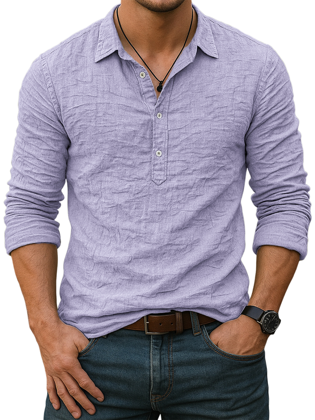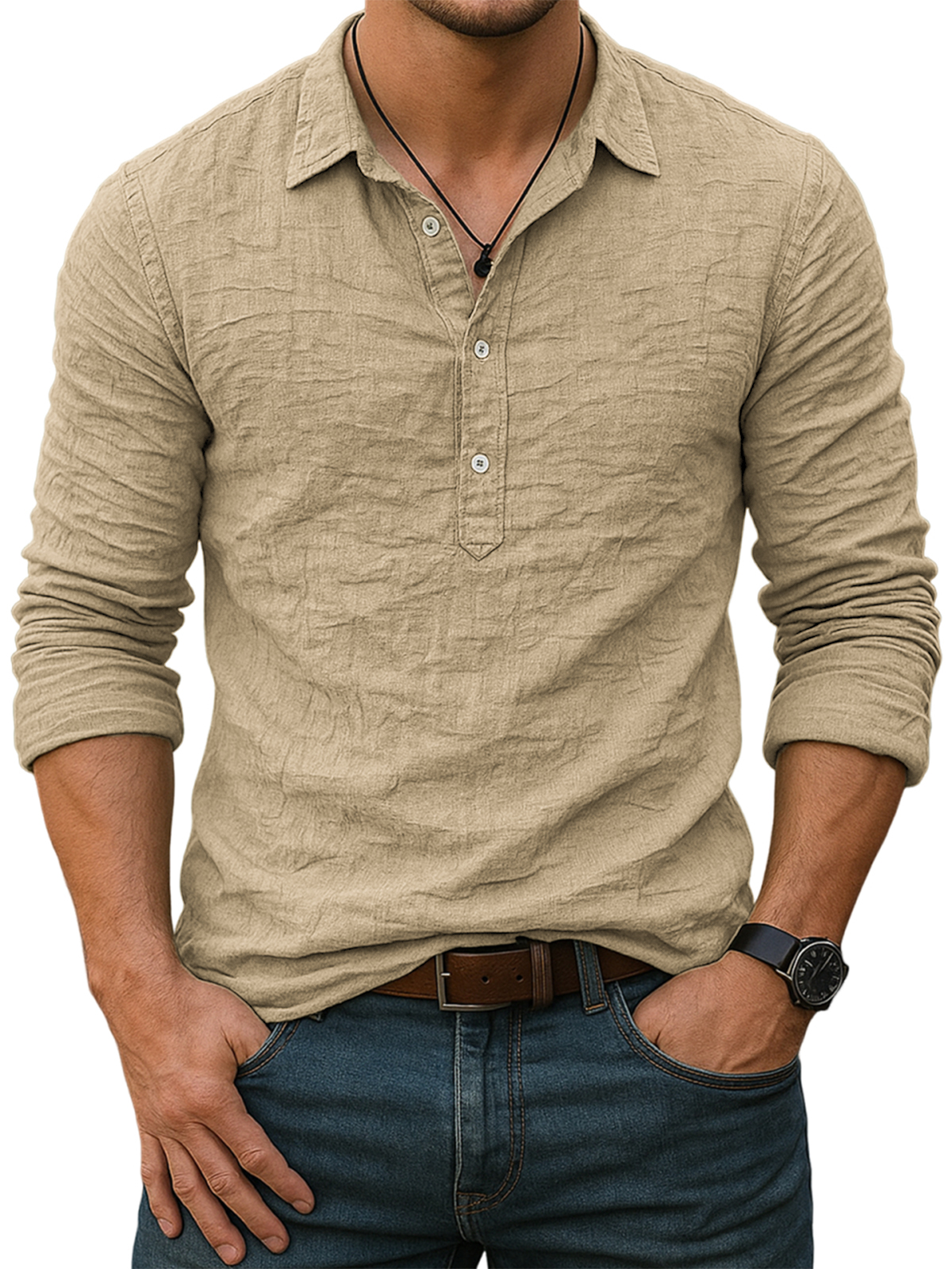 Men's Vintage Breathable Linen Casual Lapel Long Sleeve Henley Shirt