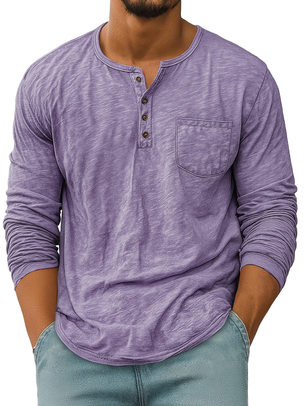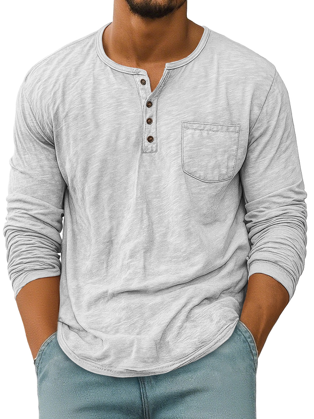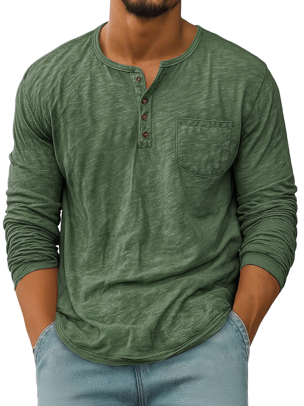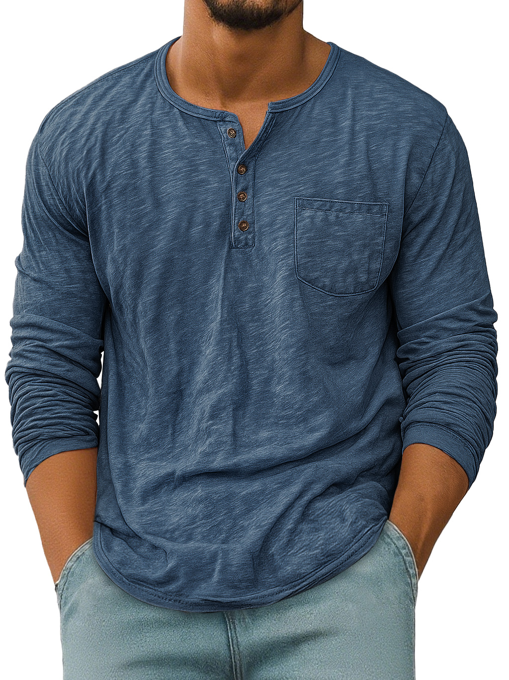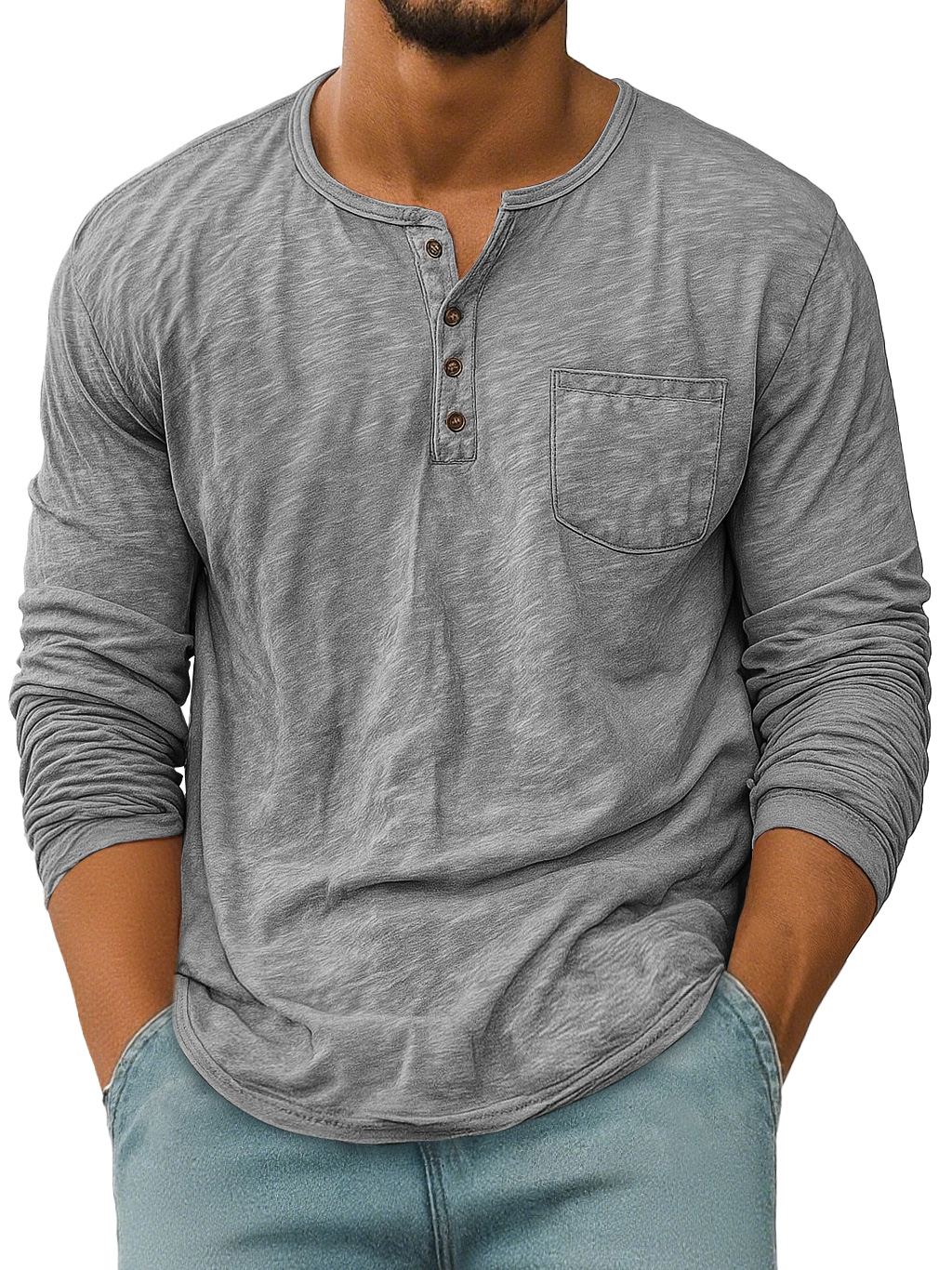 Men's Vintage Everyday Casual Pocket Long Sleeve Henley