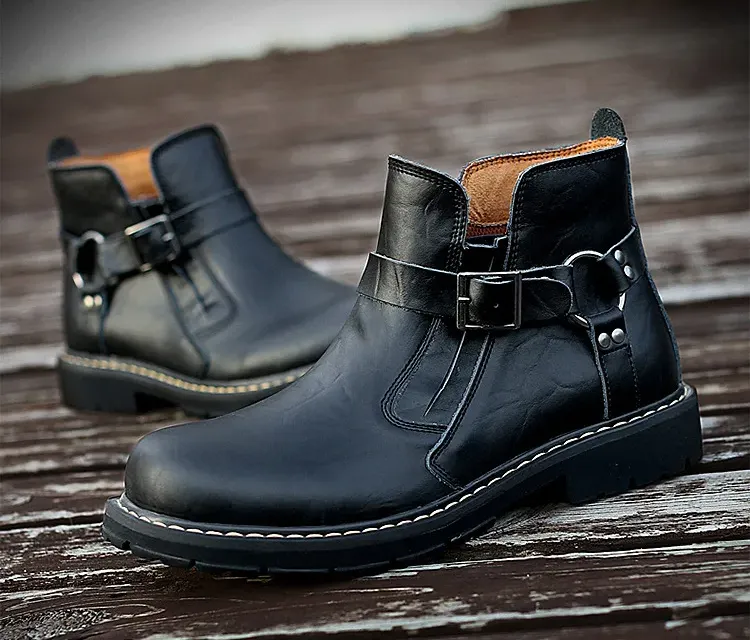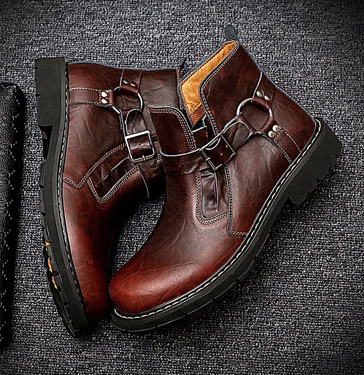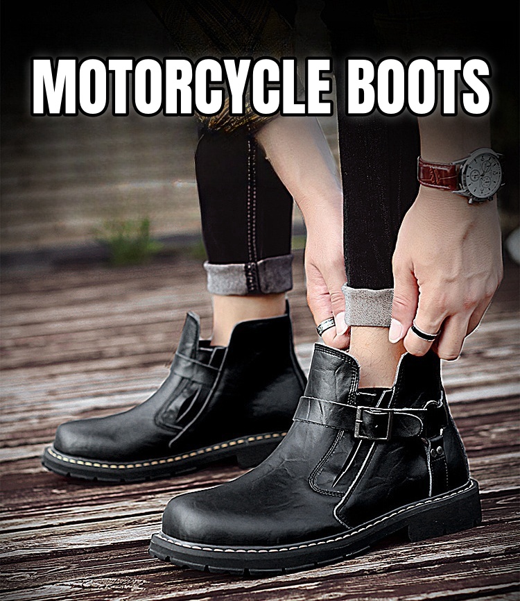 Men's Motorcycle Hard Style Handmade Cowhide Light Weight Waterproof Boots
