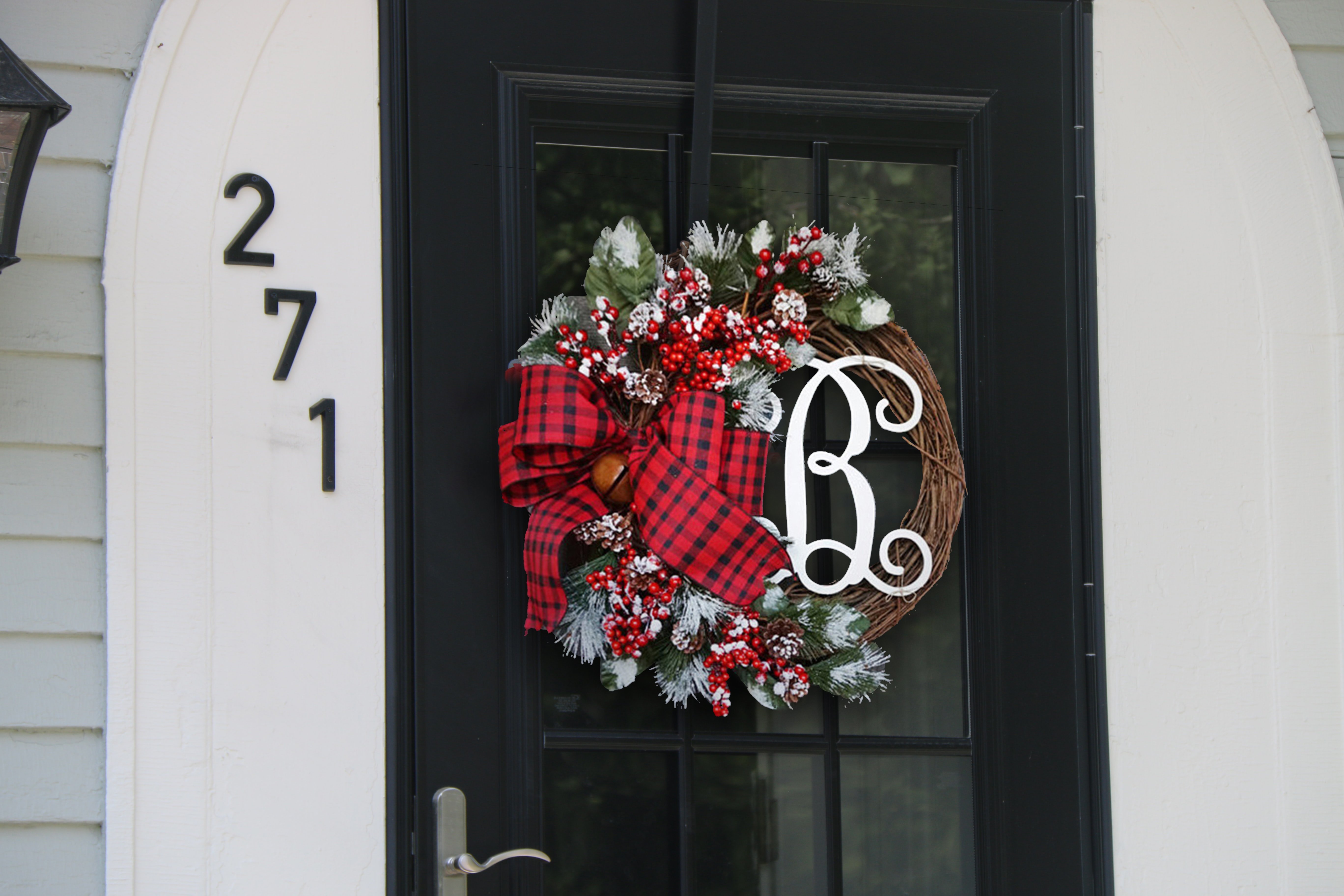 If your wreath is mounted on an indoor door, we recommend securing it in two positions to prevent it from hitting the door when it is opened or closed.