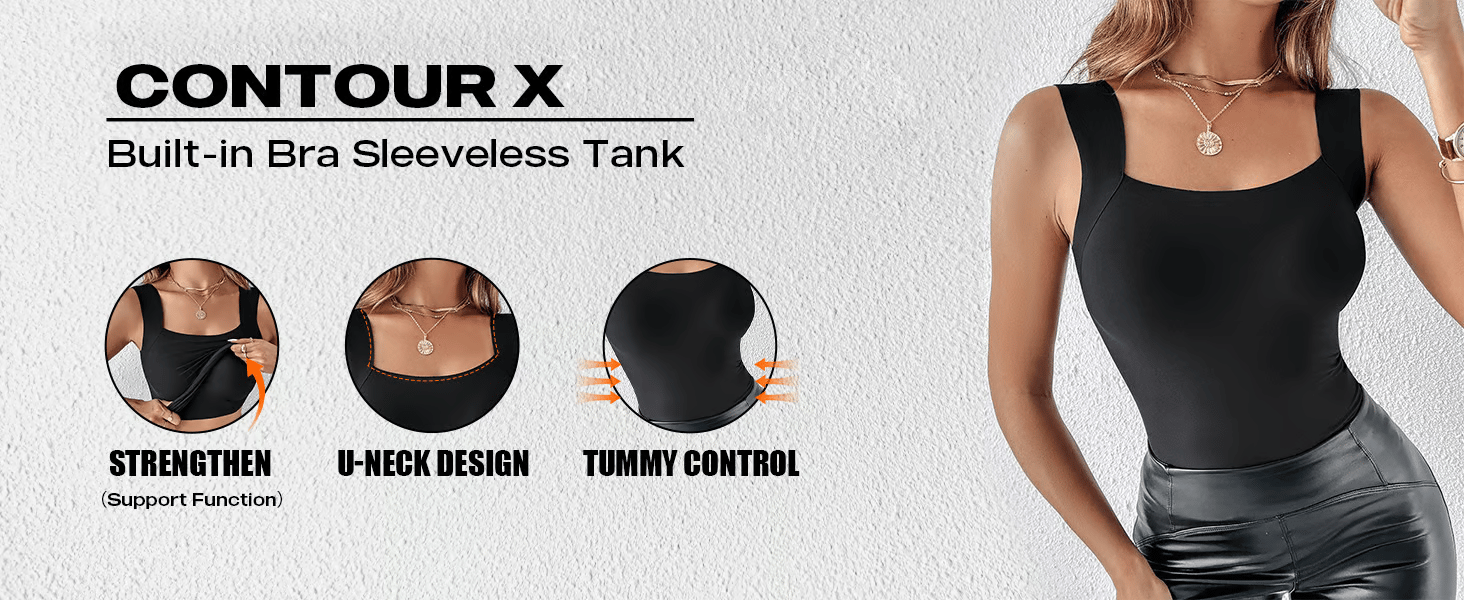 U Neck Shapewear Built-in Bra Tank makes you feel supported, confident, and comfortable without a bra every day!