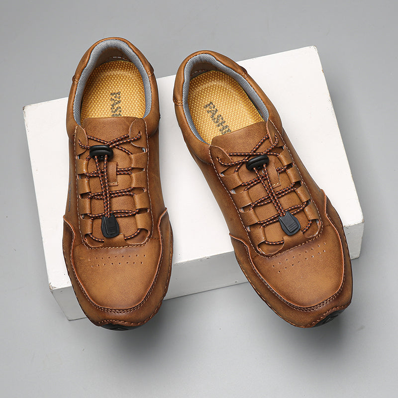You reach for your "dress" shoes—stiff leather, blisters by lunch.