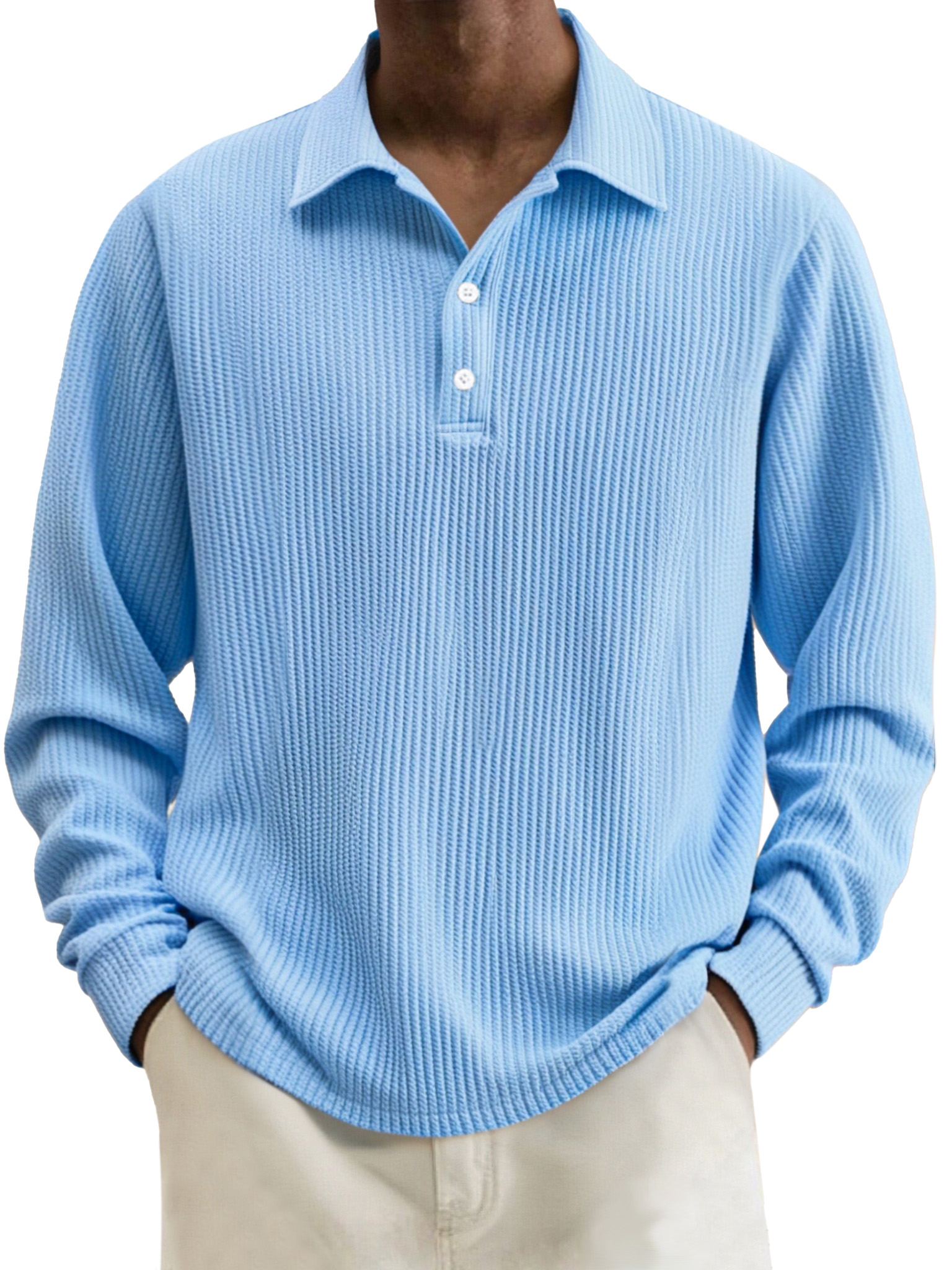 Men's Simple Solid Color Textured Lapel Long-sleeved Polo Shirt